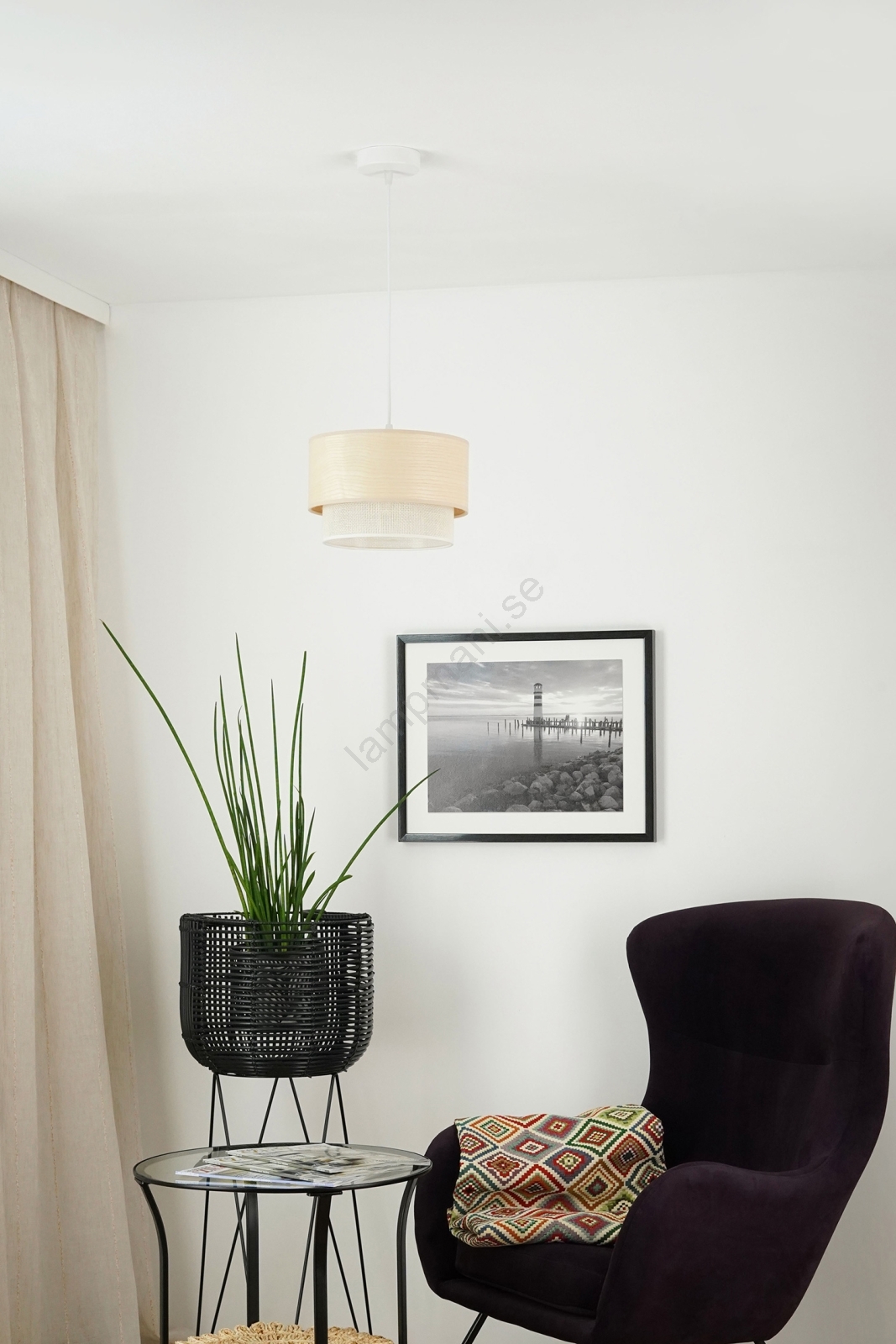 Jute och fanér är naturliga och miljövänliga material som perfekt matchar trenderna inom hållbar design. Dessa lampor kombinerar rå enkelhet med naturens elegans och skapar en varm och inbjudande atmosfär i varje rum. De är det idealiska valet för dem som värdesätter ekologiska lösningar och vill föra in naturinspirerade element i sitt hem. Genom att välja naturliga belysningsarmaturer betonar du stil, harmoni och omsorg om miljön.
