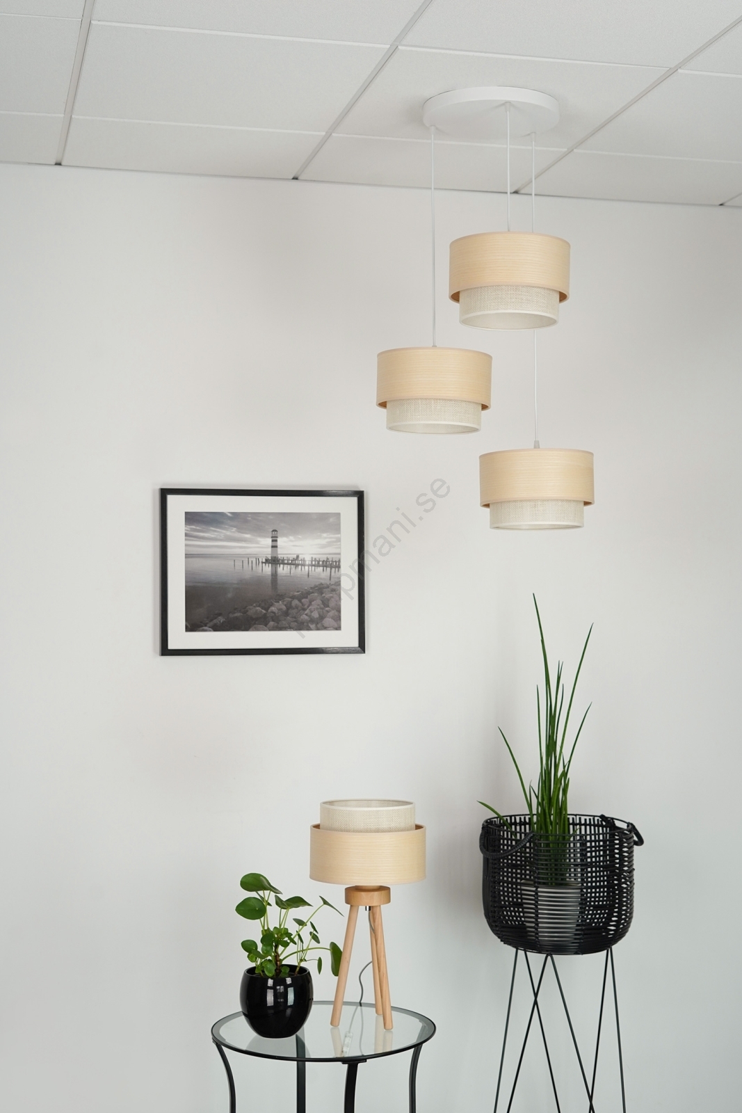 Jute och fanér är naturliga och miljövänliga material som perfekt matchar trenderna inom hållbar design. Dessa lampor kombinerar rå enkelhet med naturens elegans och skapar en varm och inbjudande atmosfär i varje rum. De är det idealiska valet för dem som värdesätter ekologiska lösningar och vill föra in naturinspirerade element i sitt hem. Genom att välja naturliga belysningsarmaturer betonar du stil, harmoni och omsorg om miljön.
