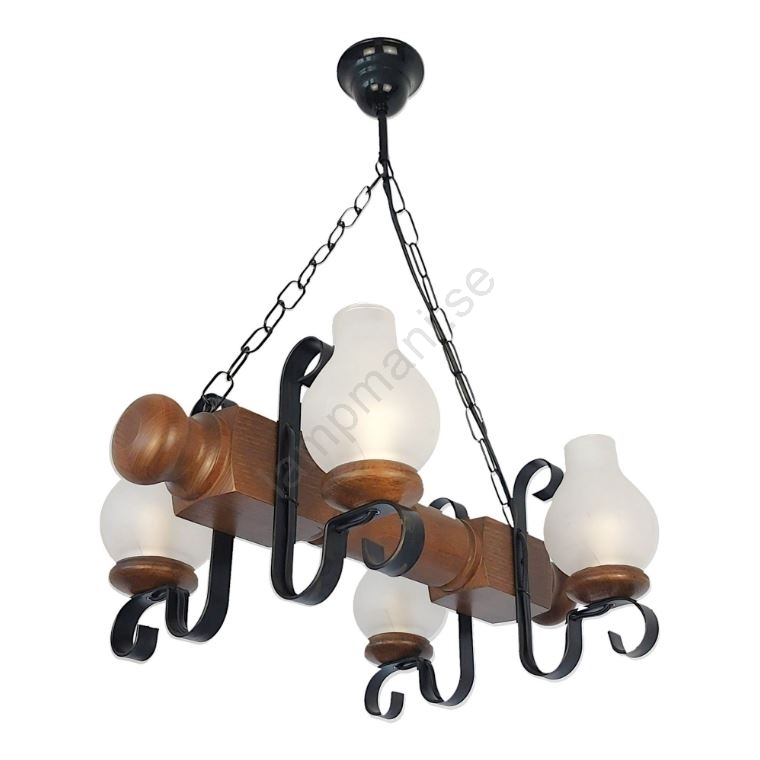 • Brilagi - Ljuskrona på kedja RUSTIC 4xE14/40W/230V bok/valnöt