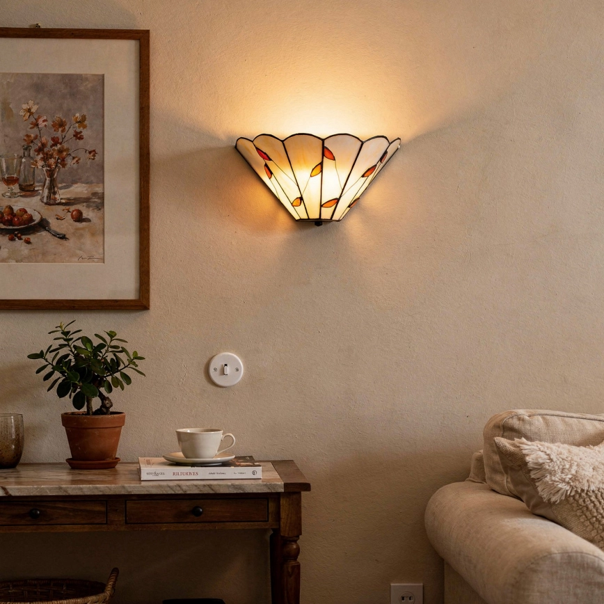 • Brilagi - Tiffany-stil vägglampa i glasmosaik, elfenben, 1xE14/40W/230V