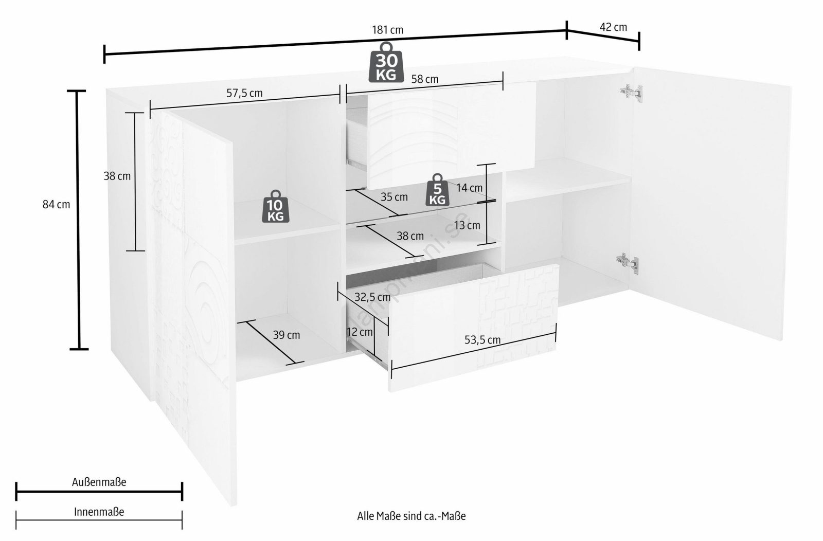 • Låda nr 2: 13,4 x 88,3 x 63,8 cm (35 kg).