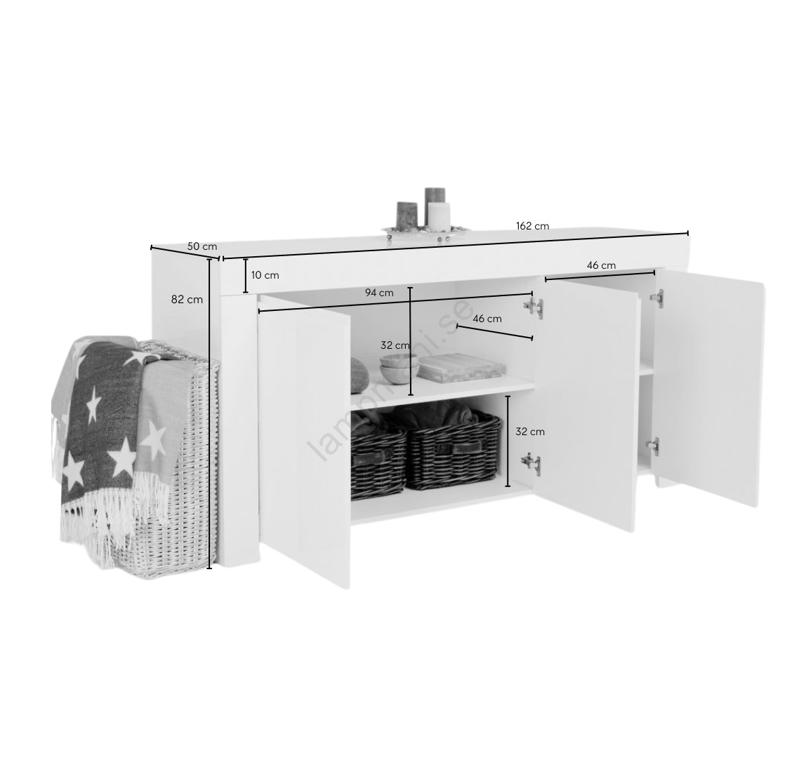 • Tack vare skåpen erbjuder den generöst förvaringsutrymme för att organisera dina vardagsföremål.