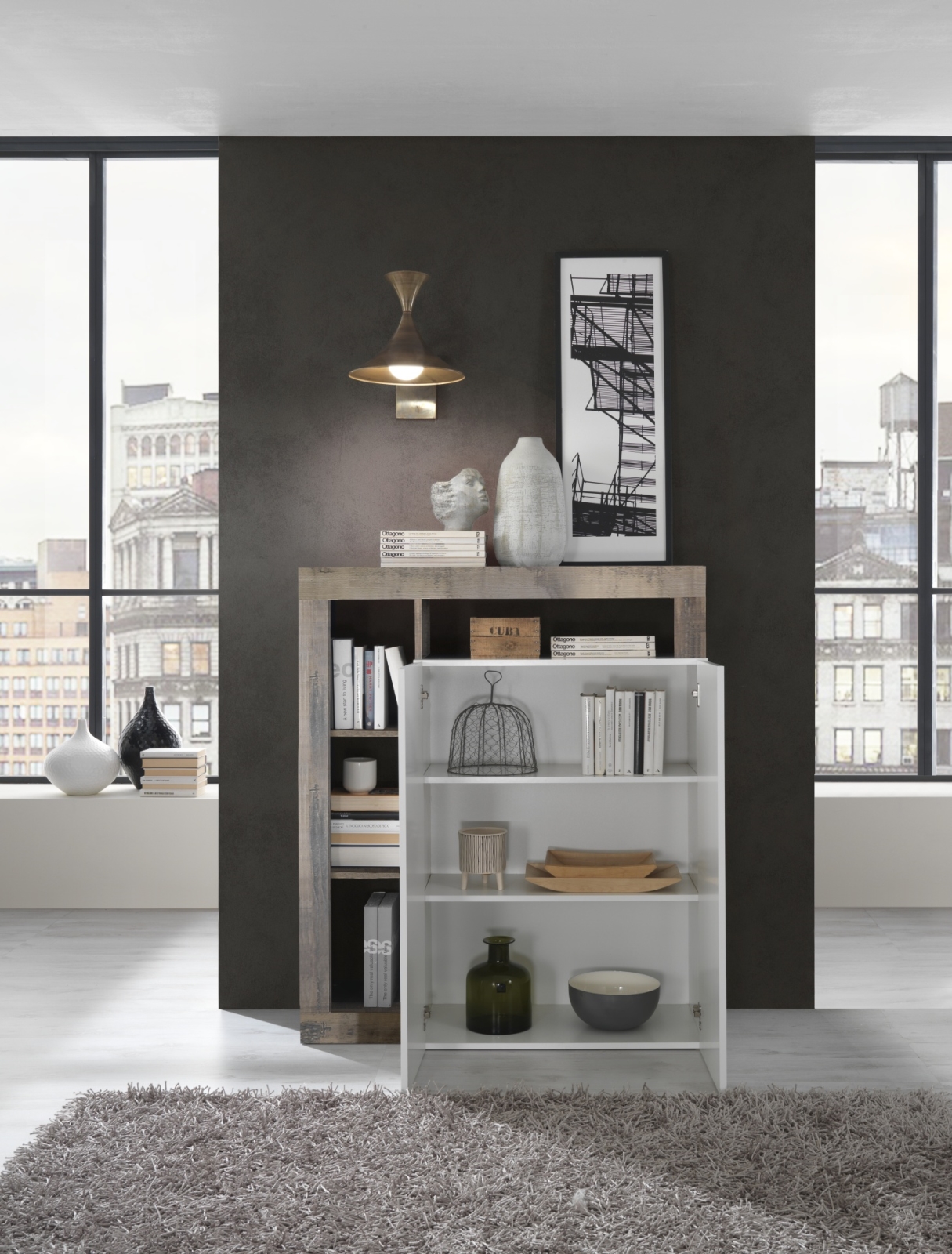 • Byrå LENOR vit/grå betong
