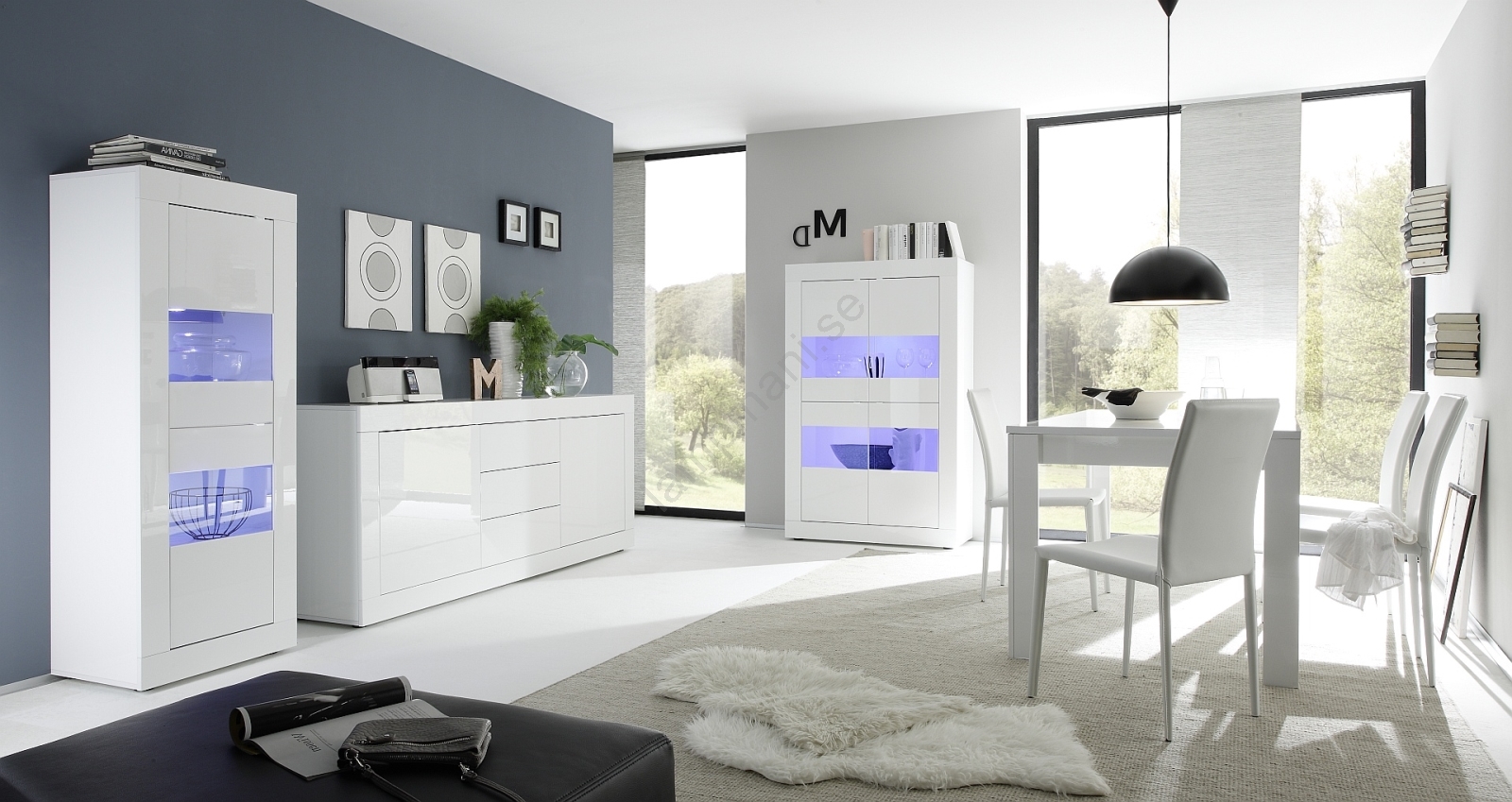 • Den har integrerad LED-belysning i blått som ger rummet en modern och inbjudande atmosfär.