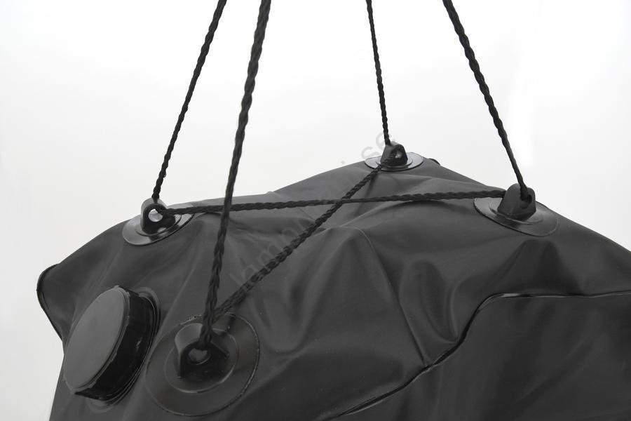 • Setet inkluderar en förstärkning, två krokar med snöre för enkel upphängning, en slang med ventil och själva solpåsen.