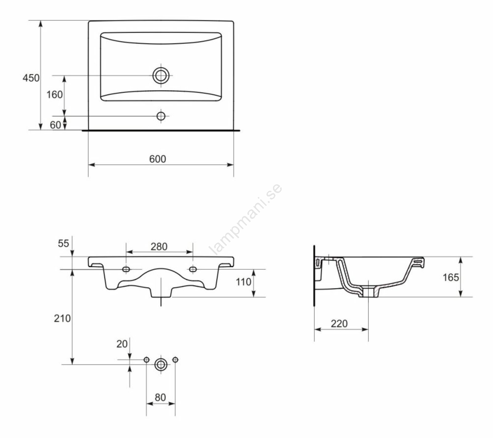 Cersanit K32-003-ECO - Infällt tvättställ COMO 45x60 cm keramik/glänsande vit | Lampmani