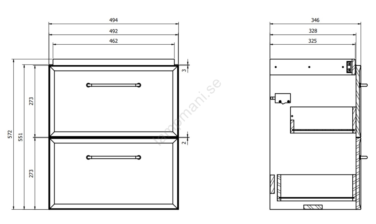 • Framsida och stomme är tillverkade av 16 mm spånskiva med vit lack.