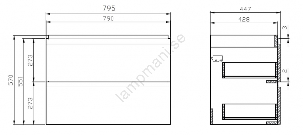 • Skåpet har två rymliga lådor med mjukstängning och dolda handtag.