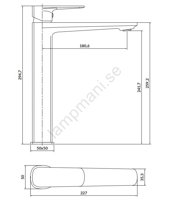 Cersanit S951-392 - Tvättställsblandare LARGA 29,5 cm blank krom