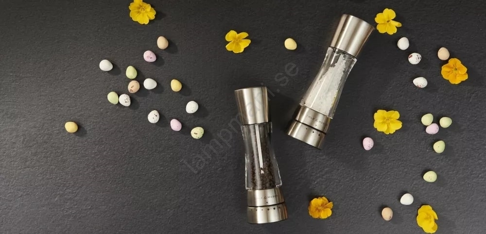 • Kvarnarna har en mekanism i härdat kolstål (peppar) och en diamantvass keramisk malningsmekanism (salt).