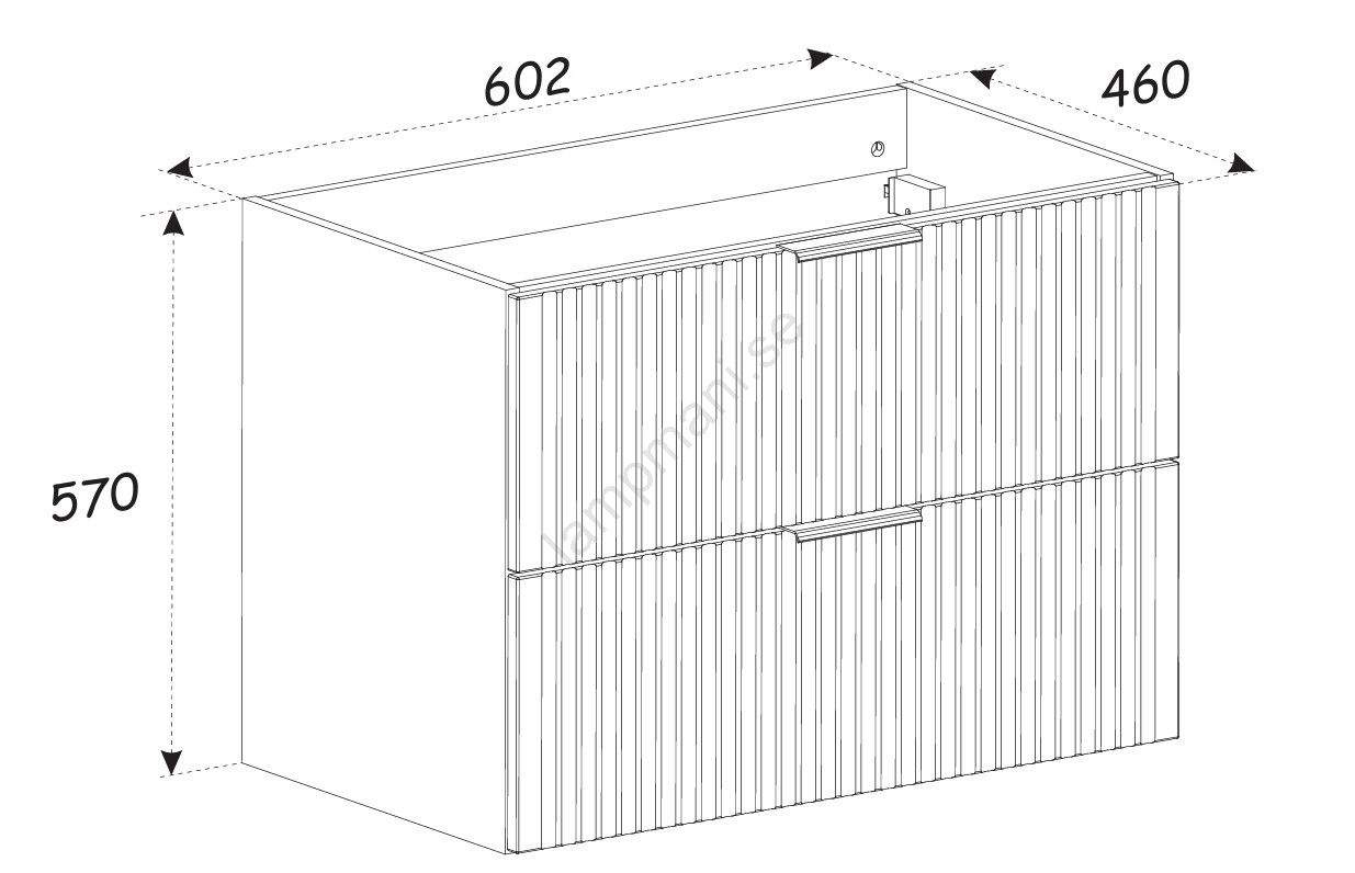 • Denna kommod levereras utan tvättställ, blandare, vattenlås och avlopp.