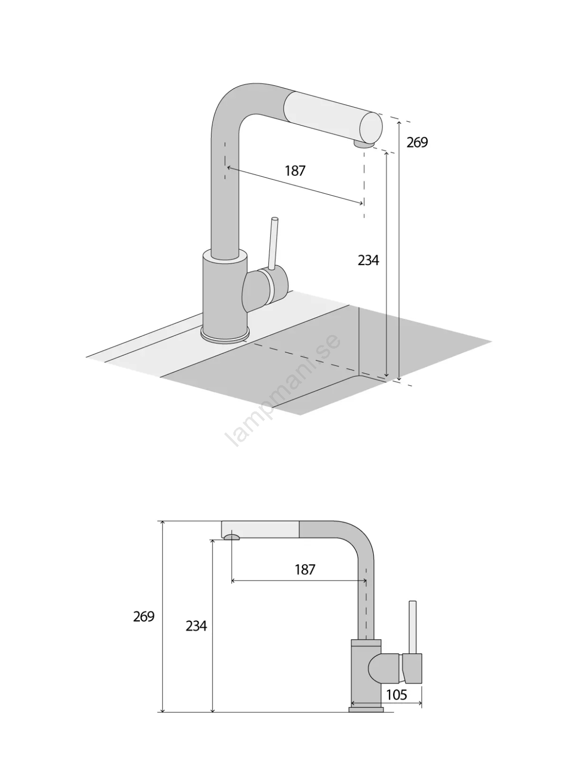 • Längd på duschslang: 1 150 mm, 1 300 mm inkl. duschhuvud.