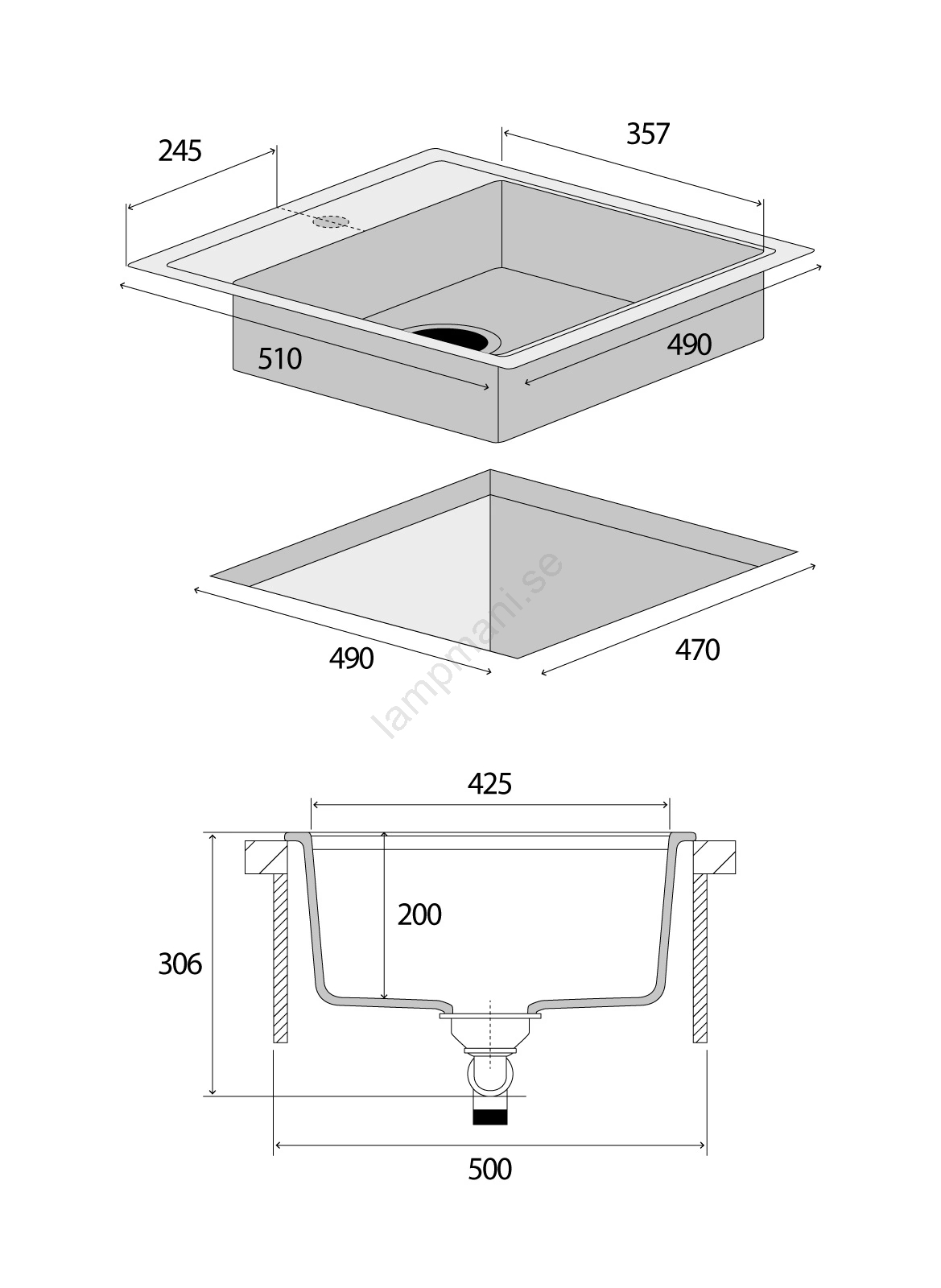 • Mått på skålen (l x b x h): 357 x 425 x 200 mm.