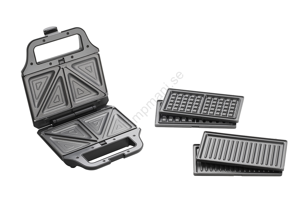 • 3 uppsättningar utbytbara plattor – brödrost, våffeljärn, grill.