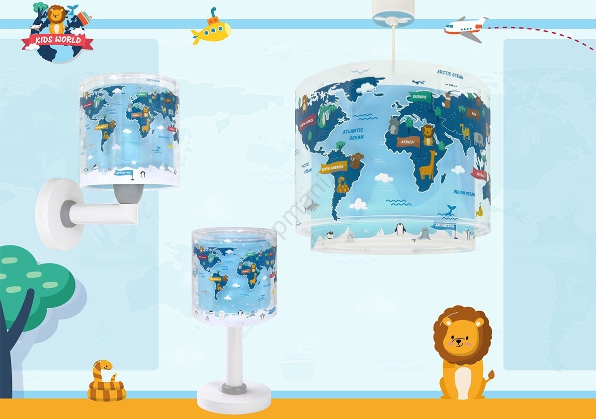 Dalber 40672 - Barnlampa WORLD 1xE27/15W/230V blå kännetecknar snygg och funktionell design. En glödlampa med E27 lock är lämplig för lampan. Här kan du köpa andra glödlampor till förmånliga priser. Du kommer att få ett intressant tillägg till ditt hem.