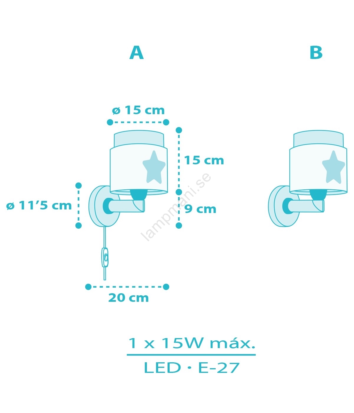 Dalber 76019T - Väggbelysning för barn BABY DREAMS 1xE27/15W/230V blå | Lampmani