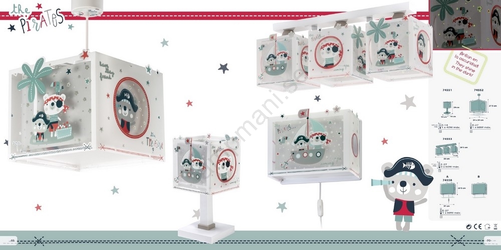 Dalber D-74552 - Ljuskrona Barn PIRATES 1xE27/60W/230V | Lampmani