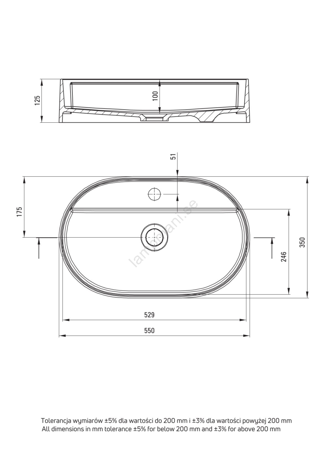 • Förpackningen innehåller endast själva tvättstället utan vattenlås och kran.