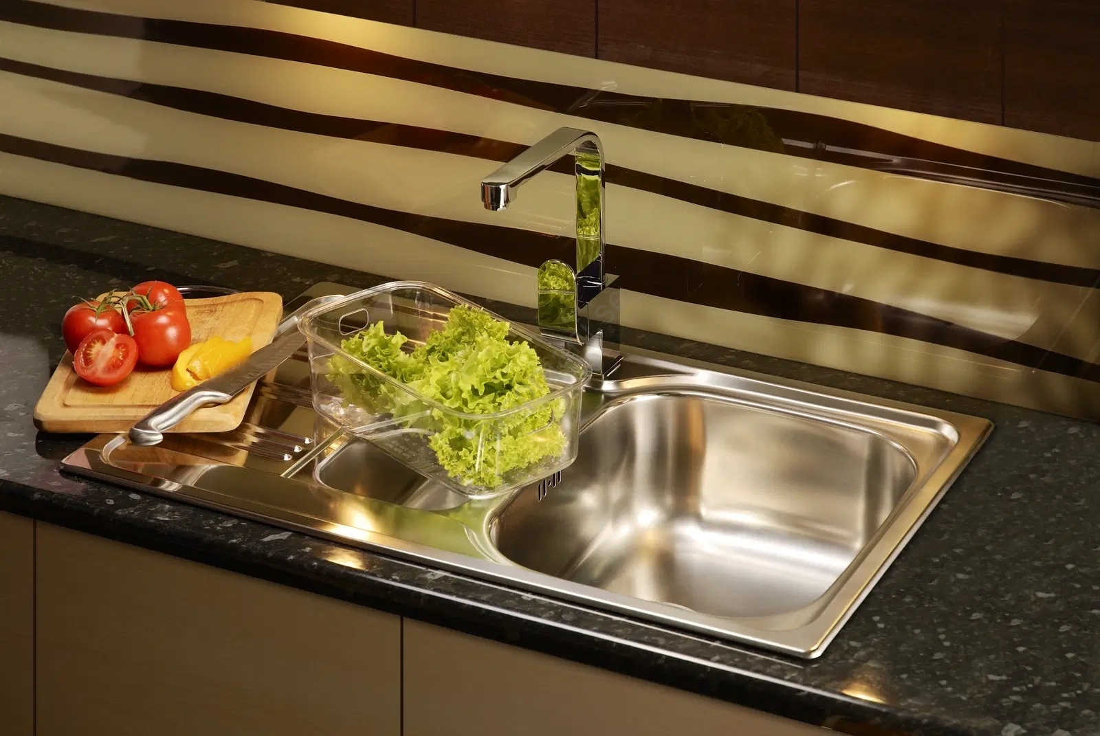 • Utrustad med armaturer för anslutning till diskmaskin.