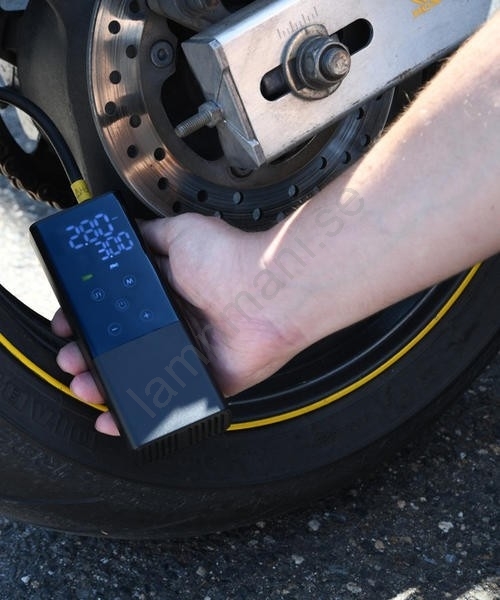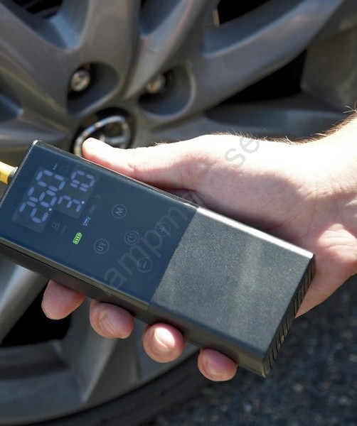 • Batteridriven luftkompressor i kompakt design med pekskärm, Auto-stop-funktion och intern minnesfunktion för förinställda värden.