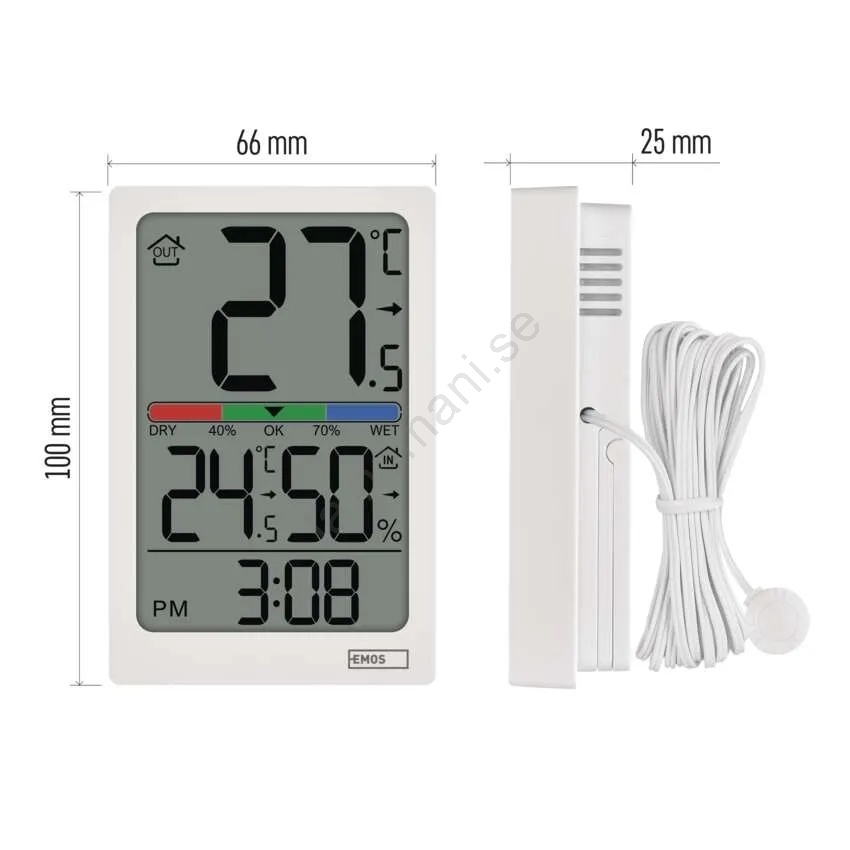 Digital termometer med hygrometer 2xAAA vit | Lampmani