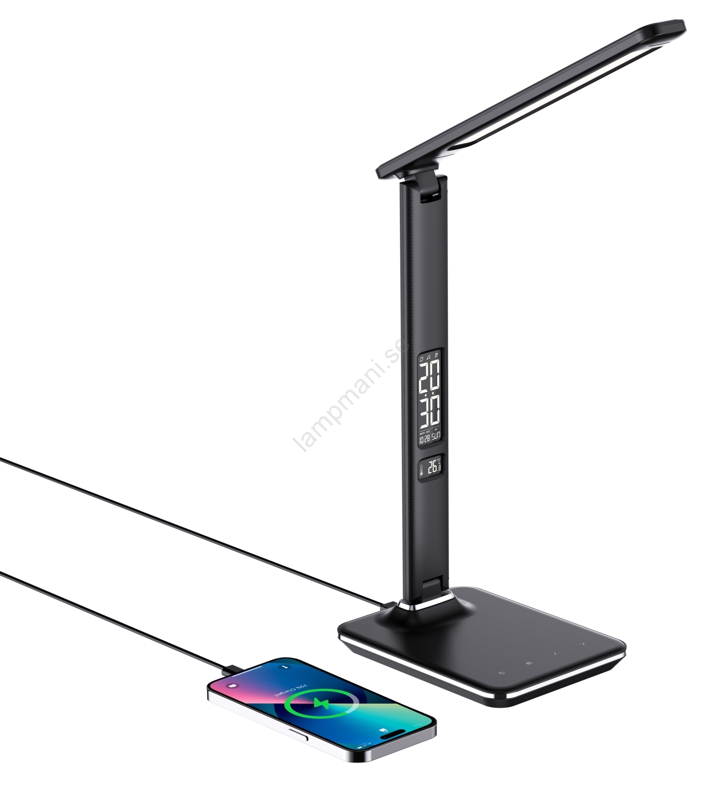 LED Dimbar skrivbordslampa med trådlös QI-laddning och USB KINGFISHER LED/8,5W/230V svart