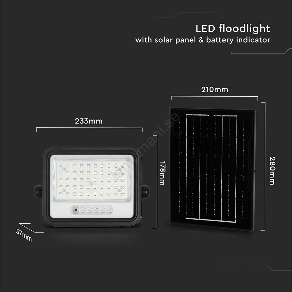 Dimbar LED-solcellsstrålkastare LED/100W/3,2V IP65 5000 mAh svart + fjärrkontroll | Lampmani
