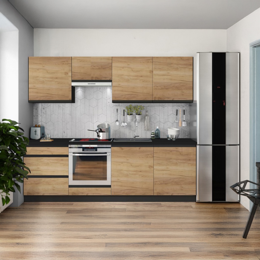 • Köksinredning MARINA 240 cm, ek craft/högblank svart