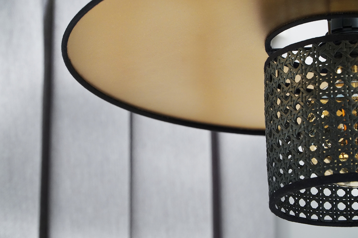 Duolla - Ytmonterad ljuskrona TOKYO RATTAN 1xE27/15W/230V diameter 50 cm guld/svart kännetecknar snygg och funktionell design. En glödlampa med E27 lock är lämplig för lampan. Här kan du köpa andra glödlampor till förmånliga priser. Du kommer att få ett intressant tillägg till ditt hem.