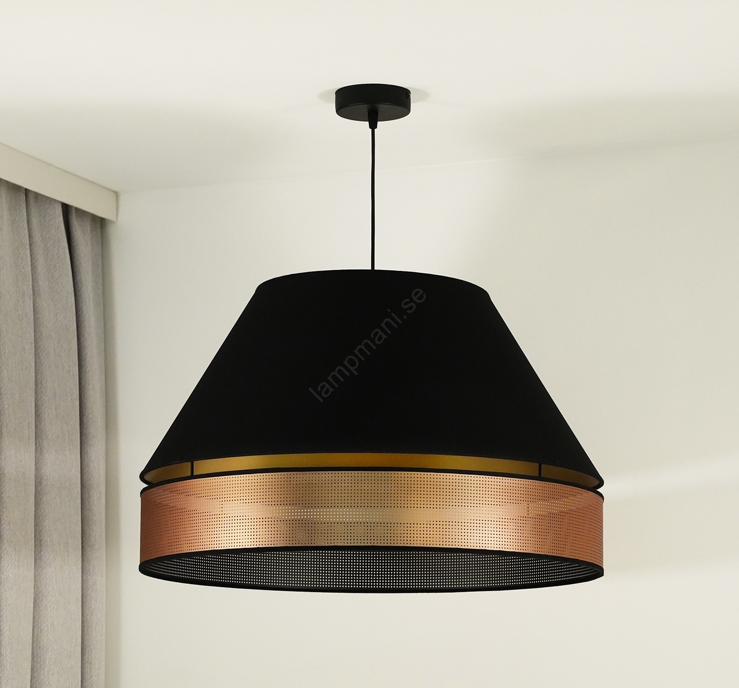 Duolla - Ljuskrona med textilsladd COPPER SHINY 1xE27/15W/230V diameter 60 cm svart/koppar kännetecknar snygg och funktionell design. En glödlampa med E27 lock är lämplig för lampan. Här kan du köpa andra glödlampor till förmånliga priser. Du kommer att få ett intressant tillägg till ditt hem.