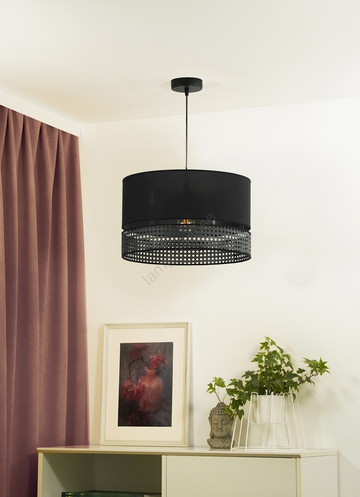Duolla - Ljuskrona med textilsladd DOUBLE RATTAN 1xE27/15W/230V diameter 40 cm svart kännetecknar snygg och funktionell design. En glödlampa med E27 lock är lämplig för lampan. Här kan du köpa andra glödlampor till förmånliga priser. Du kommer att få ett intressant tillägg till ditt hem.