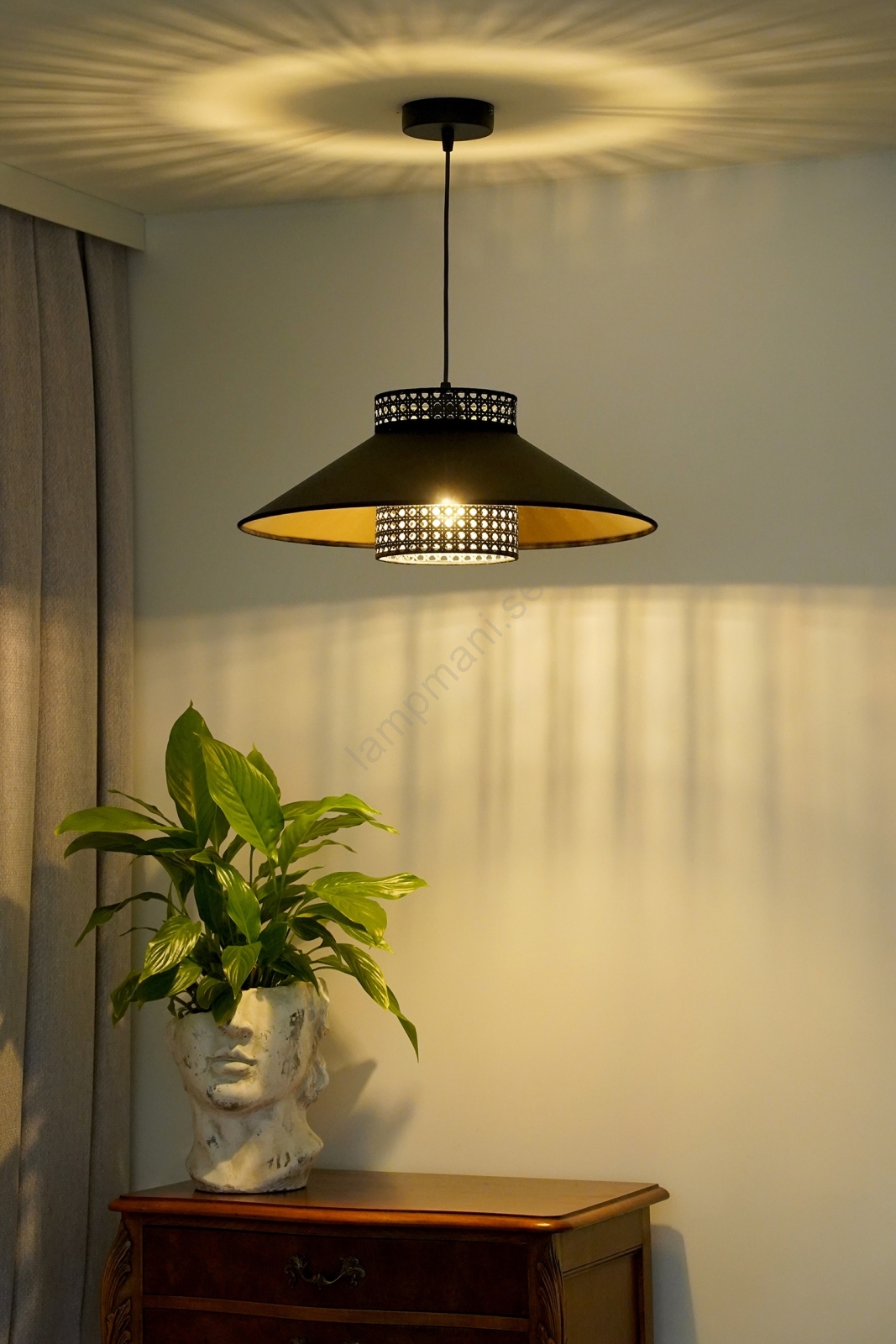 • Duolla - Ljuskrona med textilsladd RIO SHINY 1xE27/15W/230V diameter 45 cm svart/koppar