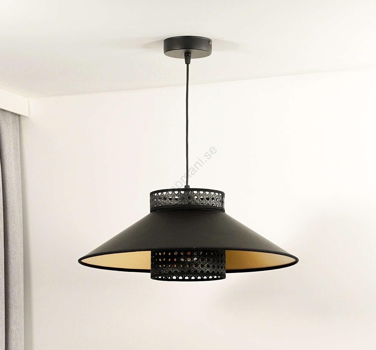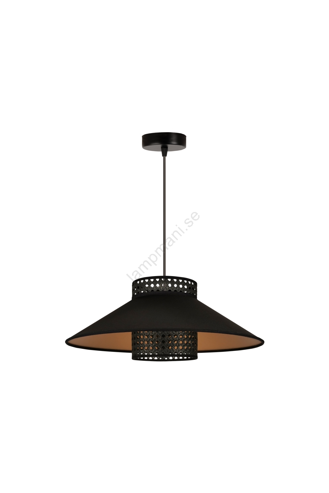 Duolla - Ljuskrona med textilsladd RIO RATTAN 1xE27/15W/230V diameter 45 cm svart/guld | Lampmani