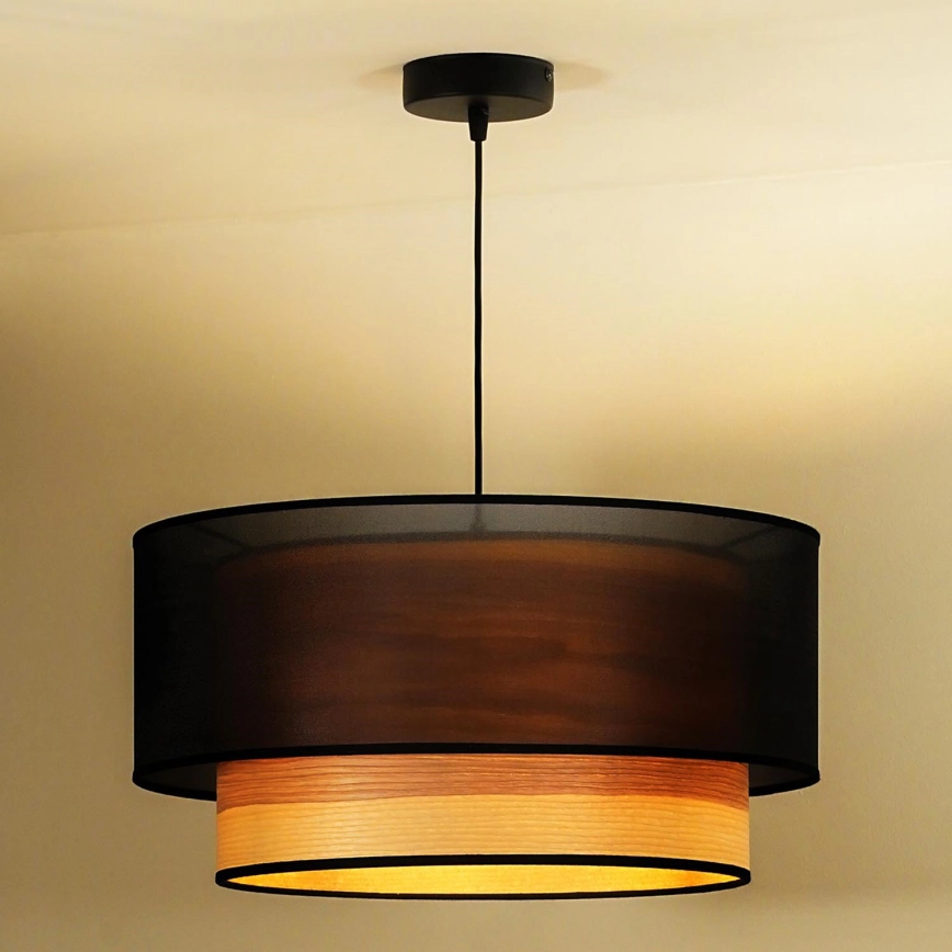 • Duolla - Ljuskrona med textilsladd WOOD BOHO 1xE27/15W/230V diameter 45 cm svart/beige