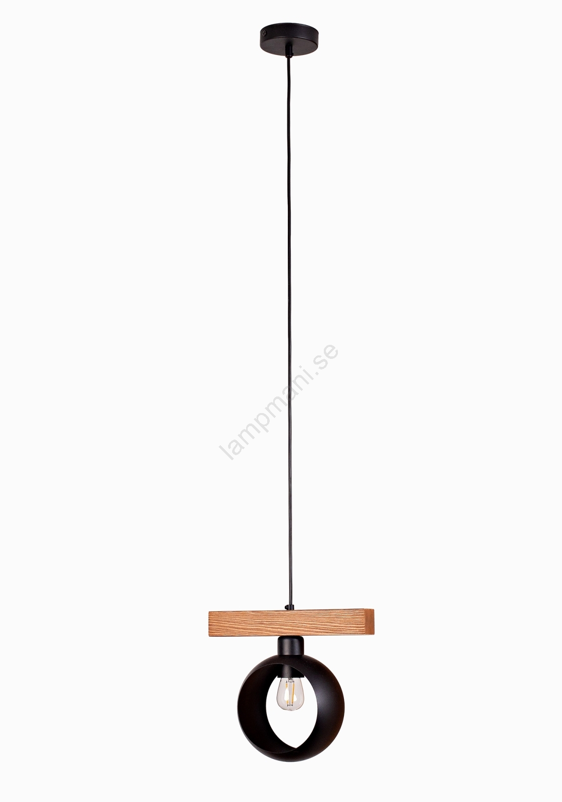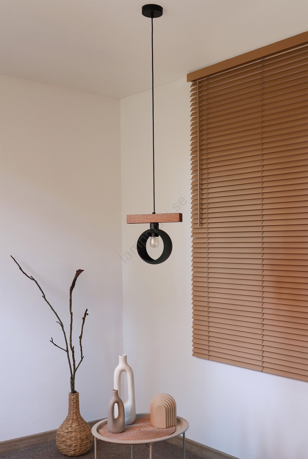 Duolla - Pendellampa på vajer IRONLINE 1xE27/15W/230V furu/ek/svart | Lampmani