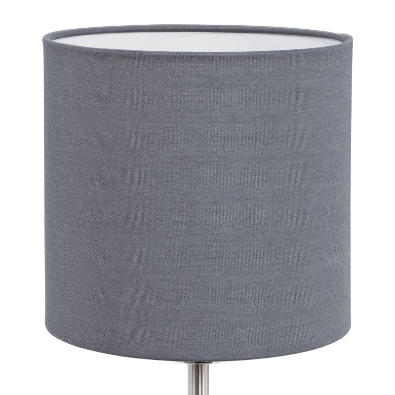 • Utseendet på bordslampan förstärks av en skärm i grått tyg, kompletterad med en fot i metall.