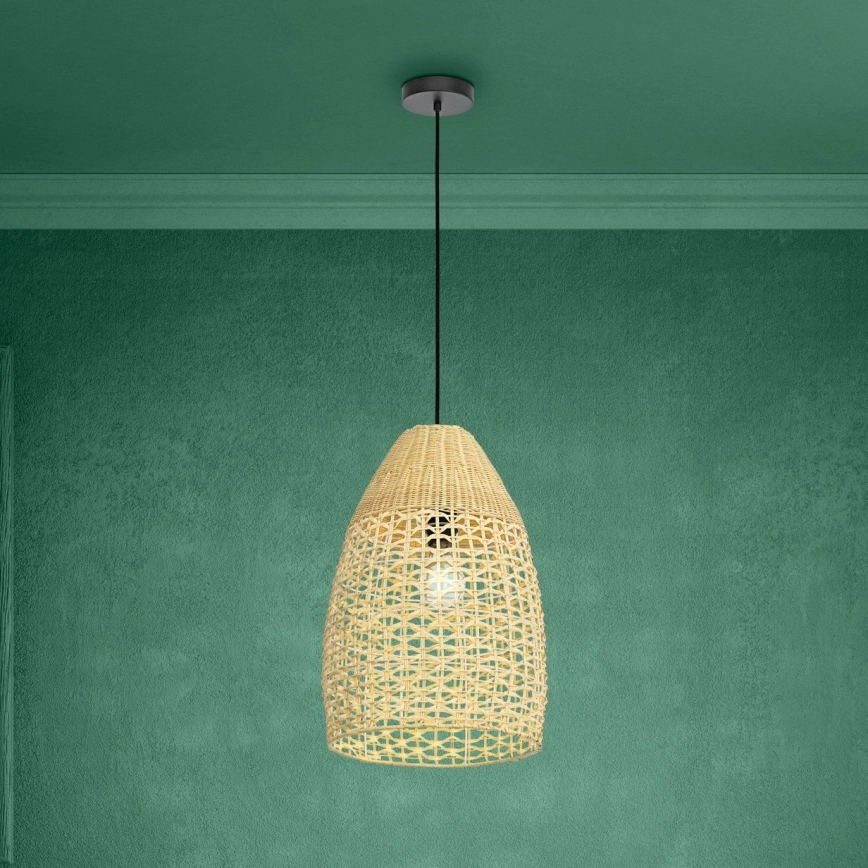 Eglo 390237 - Ljuskrona med textilsladd SAMBUCONA 1xE27/40W/230V diameter 35 cm bambu | Lampmani