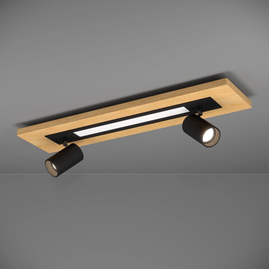 • LED taklampa är tillverkad av svart strukturerad metall med en omgivande fanerad träram i ekutseende.