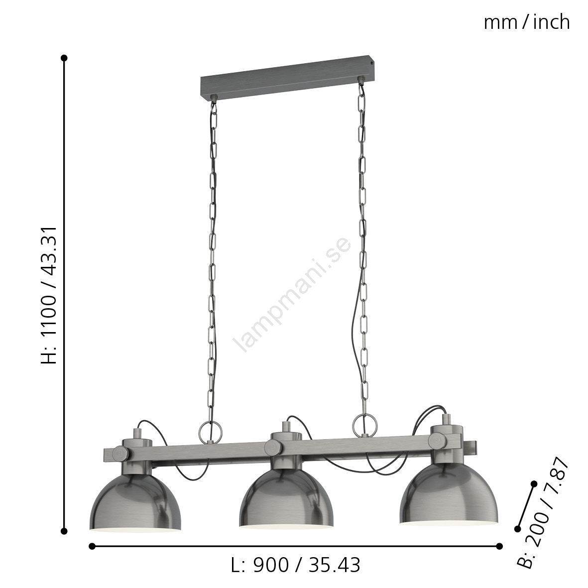Eglo 43168 - Ljuskrona med kedja LUBENHAM 3xE27/28W/230V | Lampmani