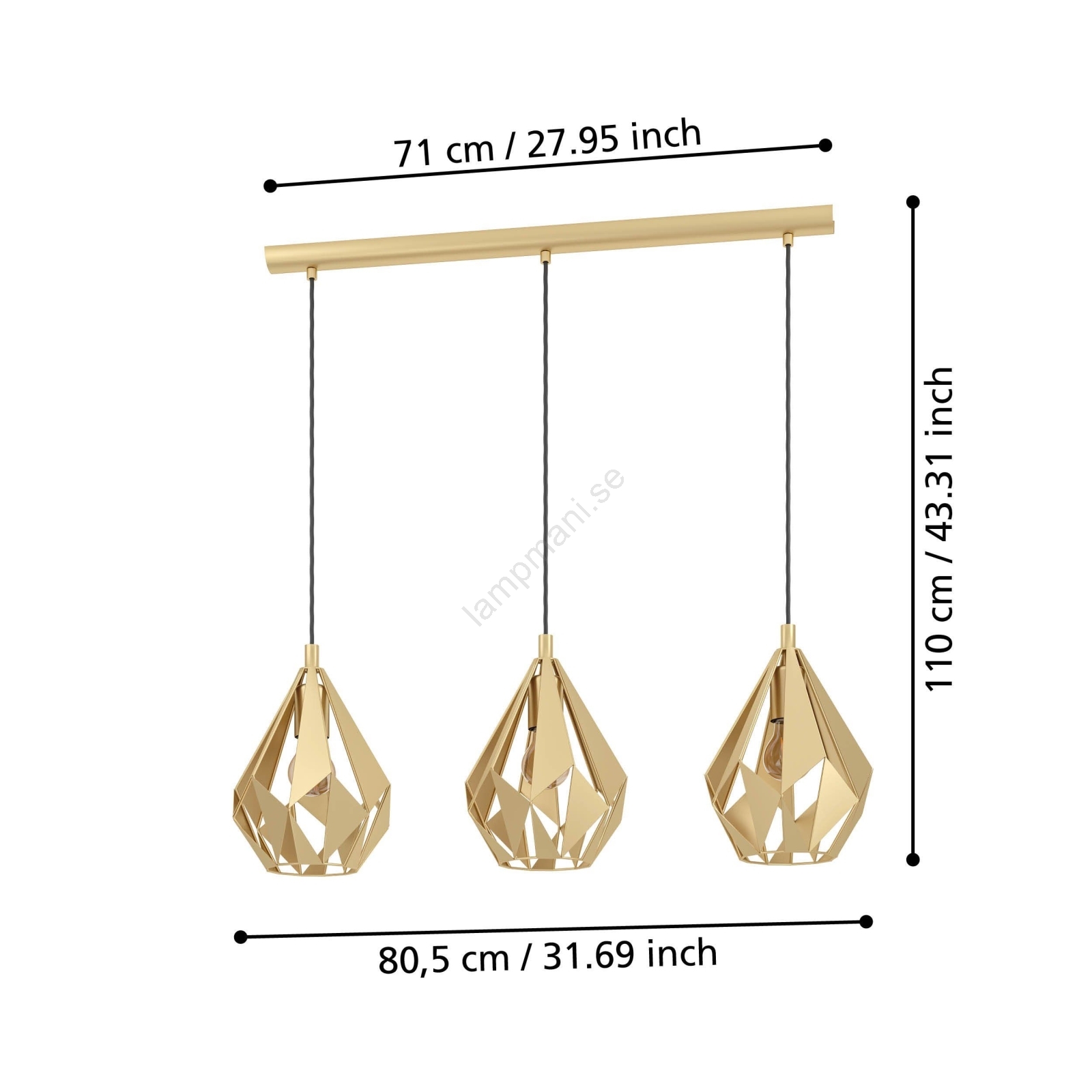 • Eglo 49991 - Hängande lampa CARLTON 1 3xE27/60W/230V