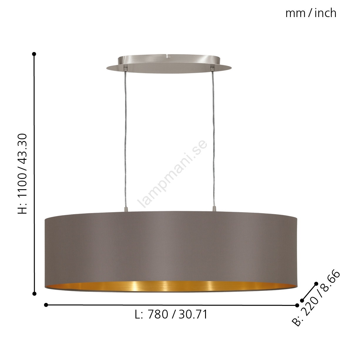 Eglo 55271 - Ljuskrona med textilsladd MASERLO 2xE27/60W/230V brun kännetecknar snygg och funktionell design. En glödlampa med E27 lock är lämplig för lampan. Här kan du köpa andra glödlampor till förmånliga priser. Du kommer att få ett intressant tillägg till ditt hem.