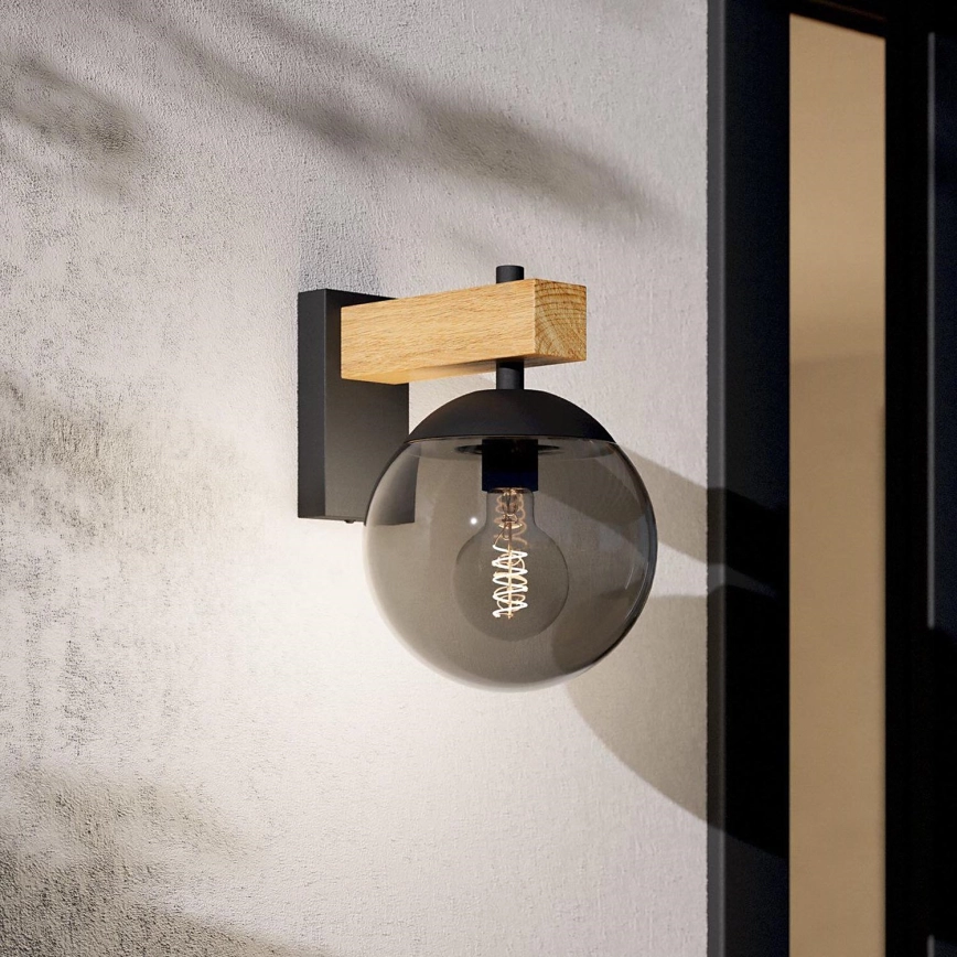 • Eglo - Vägglampa för utomhusbruk 1xE27/40W/230V svart/trä IP44
