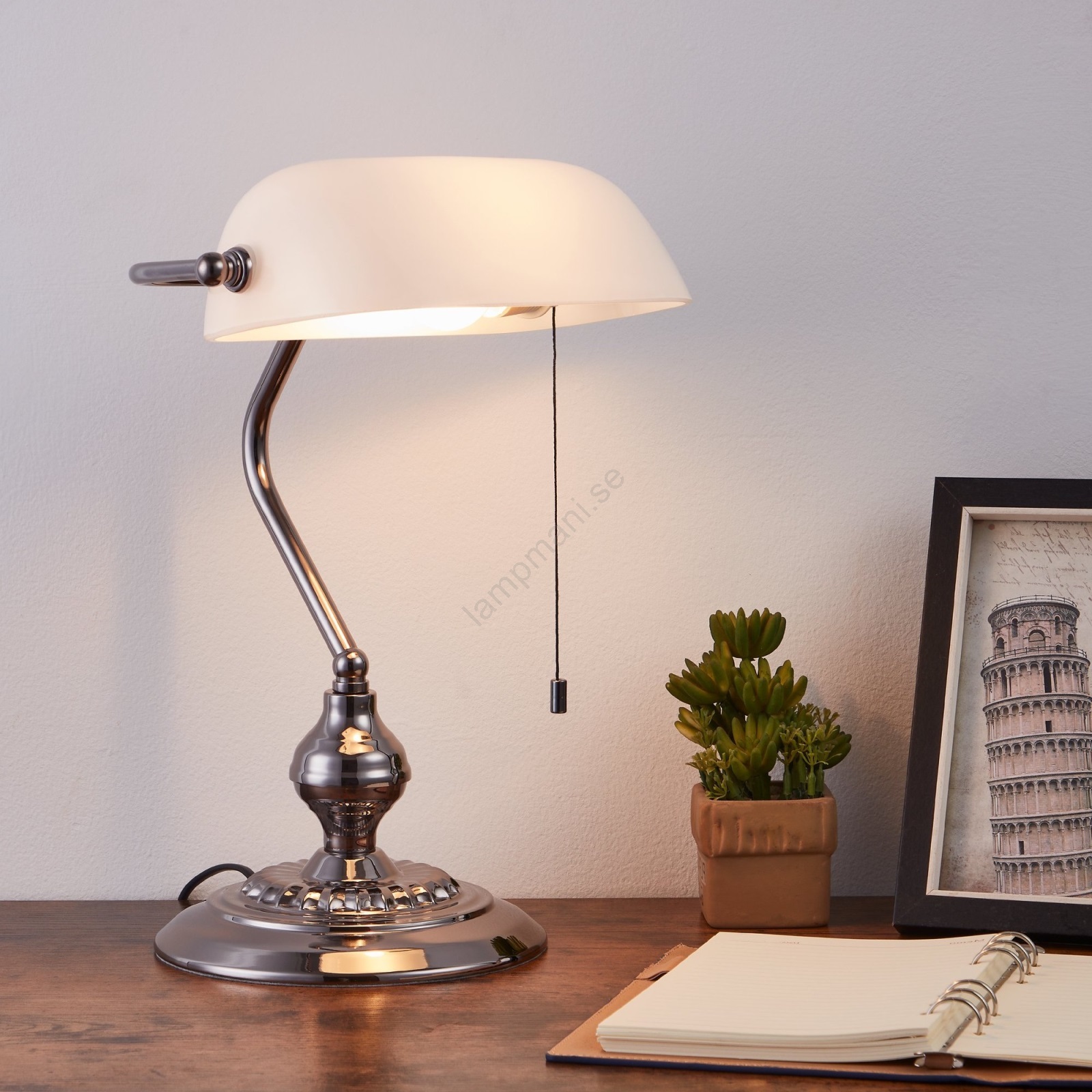 Eglo 901019 - Bordslampa BANKER 1xE27/60W/230V vit/skinande krom | Lampmani