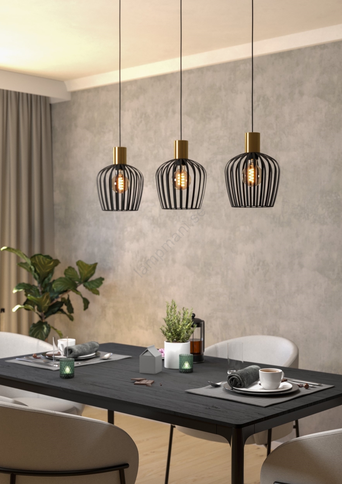 Eglo - Ljuskrona med textilsladd 3xE27/40W/230V svart/guld kännetecknar snygg och funktionell design. En glödlampa med E27 lock är lämplig för lampan. Här kan du köpa andra glödlampor till förmånliga priser. Du kommer att få ett intressant tillägg till ditt hem.