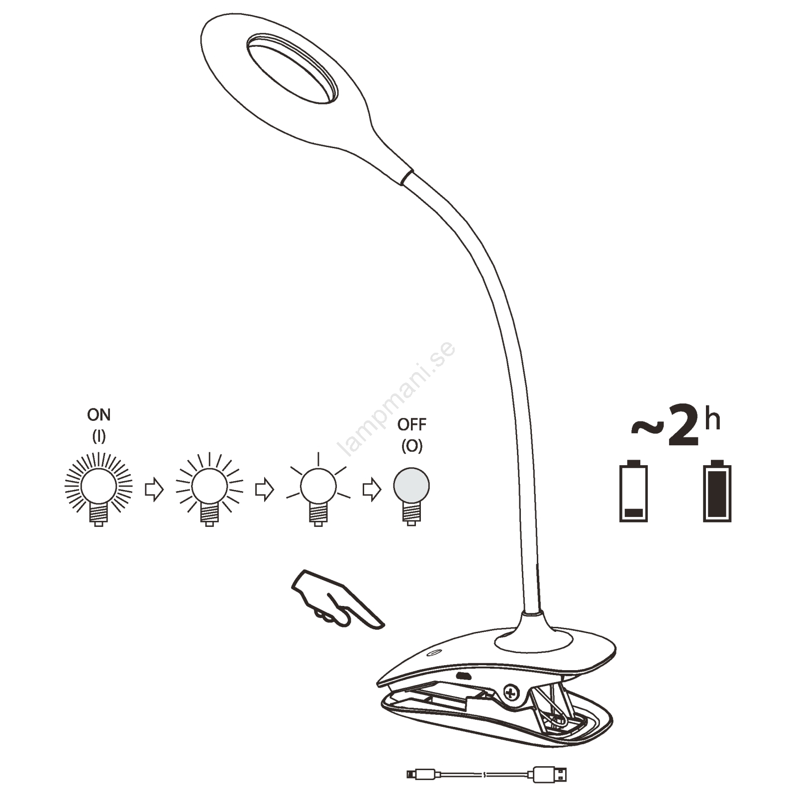 Eglo 97077 - CABADO dimbar LED-lampa med klämma LED/3W/5V vit | Lampmani