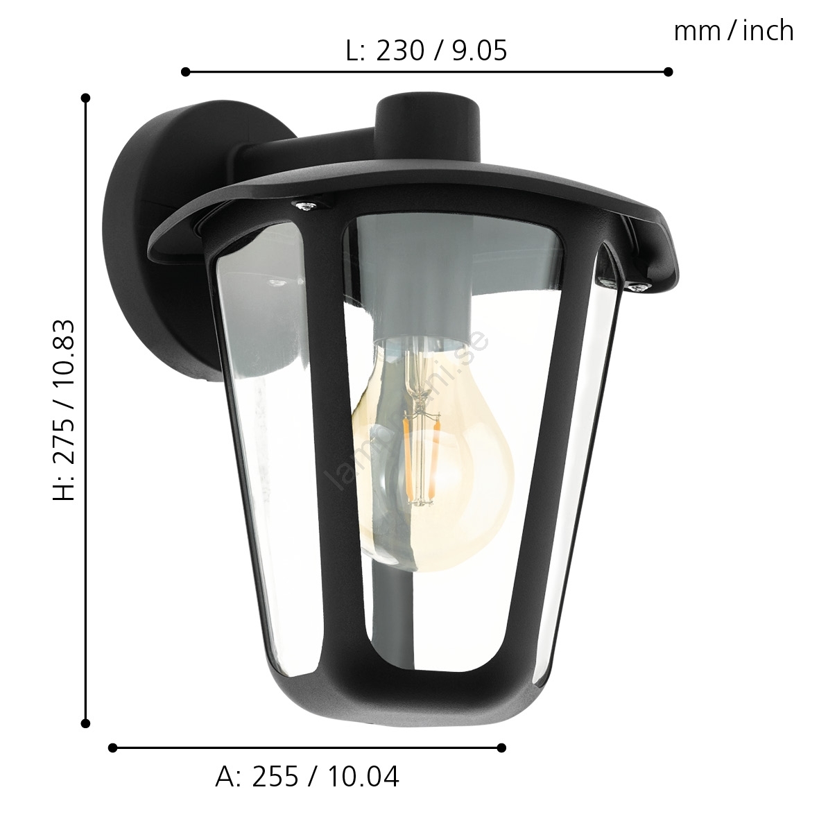 Eglo 98121 - Utomhus Väggbelysning MONREALE 1xE27/60W/230V IP44 svart | Lampmani