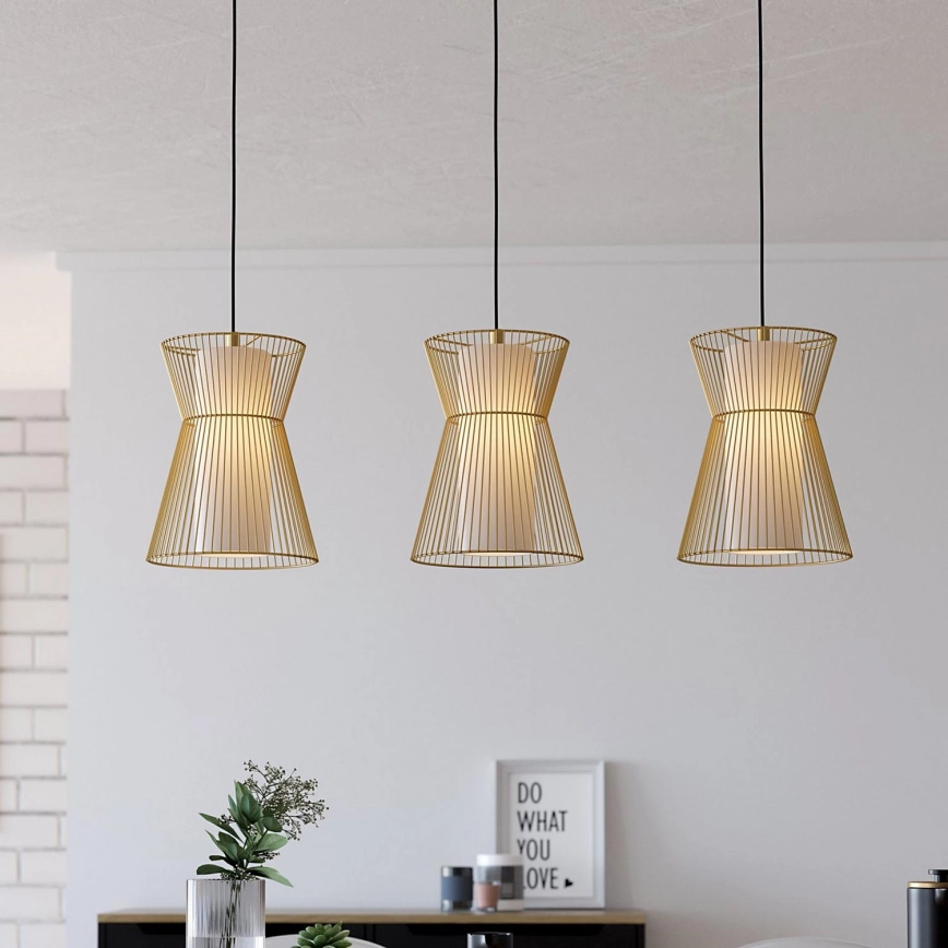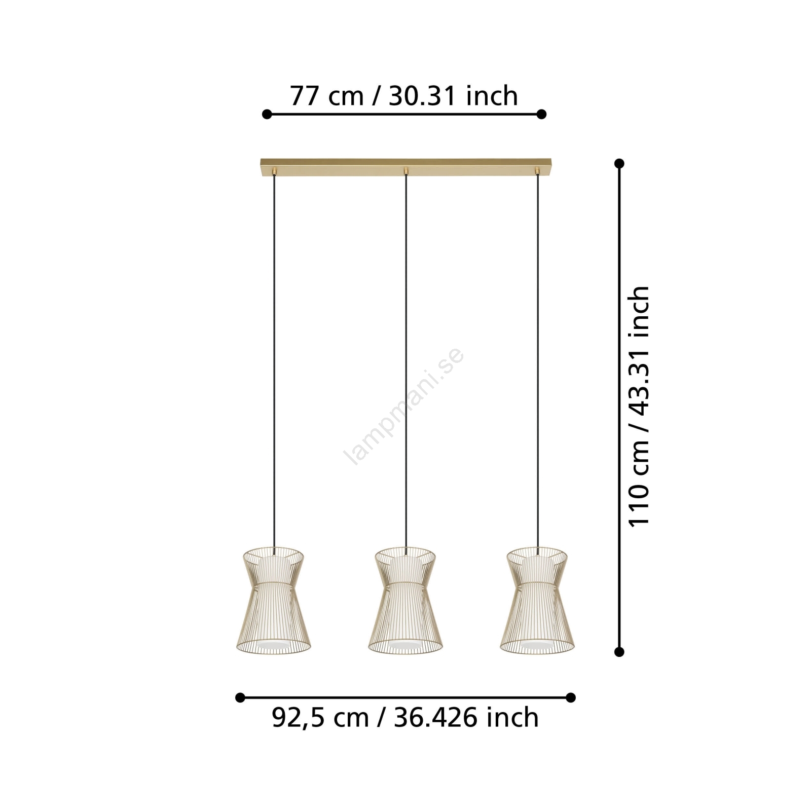 Eglo - Ljusskrona med upphängningsrem 3xE27/40W/230V gyllene kännetecknar snygg och funktionell design. En glödlampa med E27 lock är lämplig för lampan. Här kan du köpa andra glödlampor till förmånliga priser. Du kommer att få ett intressant tillägg till ditt hem.