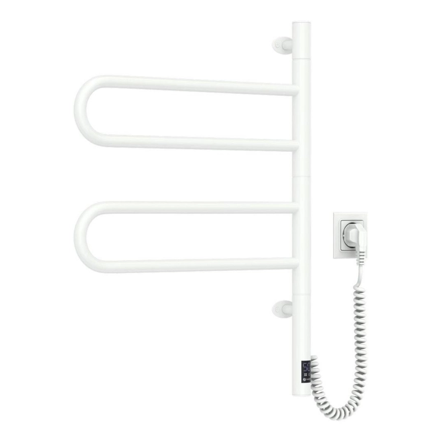 Elektrisk vridbar handdukstork med termostat FOUETTE 60W 65X49 cm vit | Lampmani