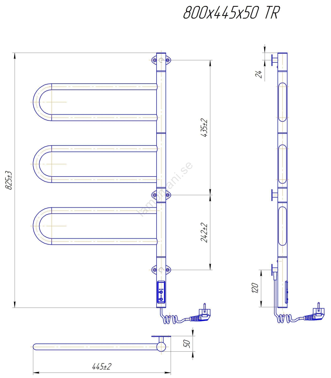 • Elektrisk handdukstork för badrum med inbyggd termostat.