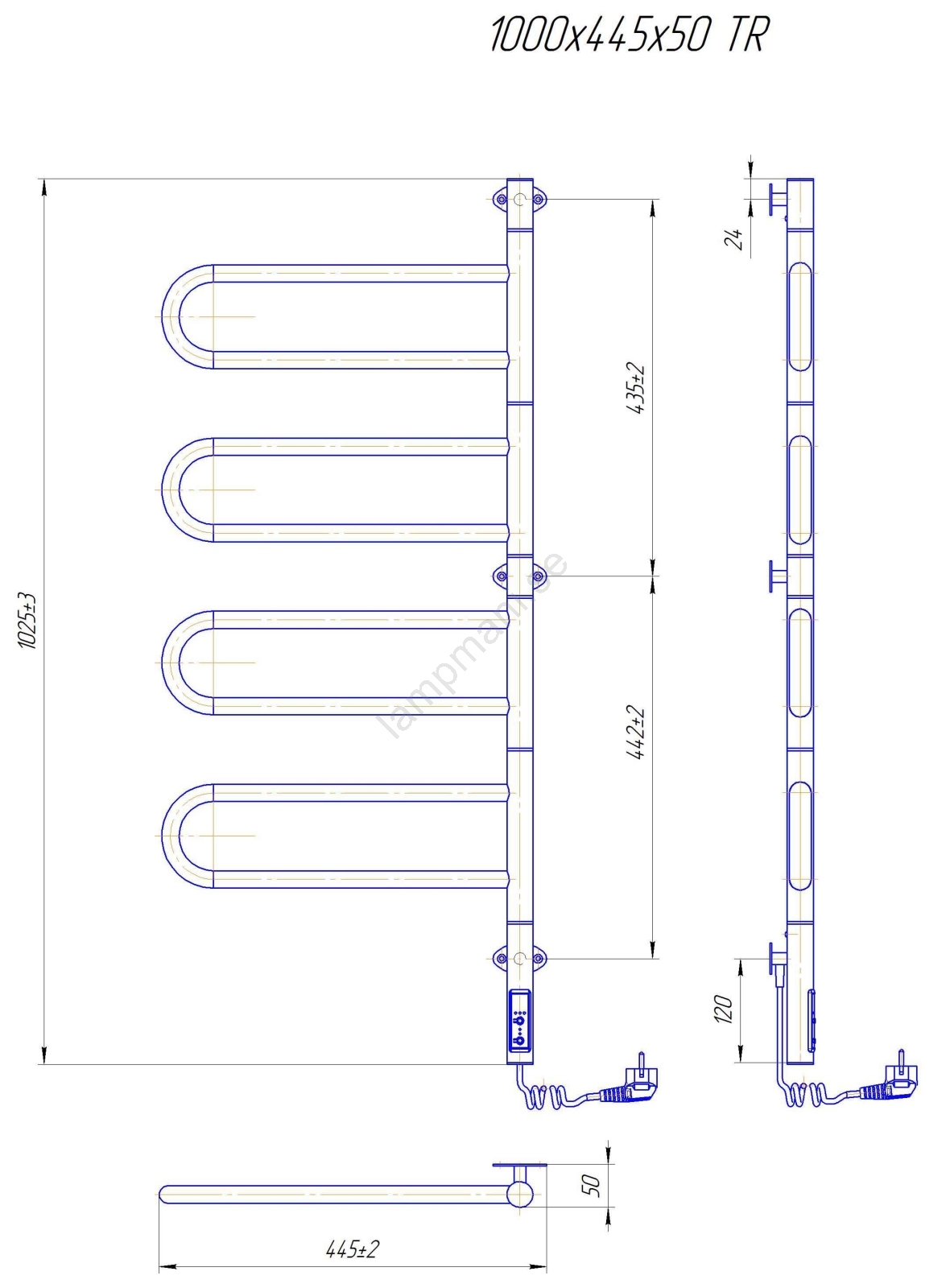 Elektrisk vridbar handdukstork TRISTAR 105W/230V 100x44,5cm IP44 rostfritt stål/polerad krom | Lampm